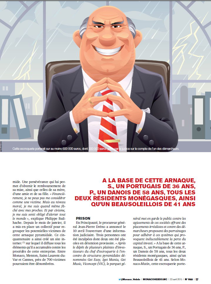 Pour ceux qui n’auraient pas le courage de tout lire, en résumé, Get Easy / Igetmania / viconcept / go2up est un système de PONZI dissimulé sous un pseudo-MLM. GetEasy & Co n’a pas de clients, les rémunérations des membres proviennent exclusivement des sommes versées par les nouveaux adhérents. Ce genre de système pyramidal est illégal en France et quasiment partout dans le monde, les peines encourues en France sont de 5 ans d’emprisonnement et 375.000 euros d’amende. Voir articles L122-6 et L122-7 du code de la consommation et article 313-1 du code pénal
