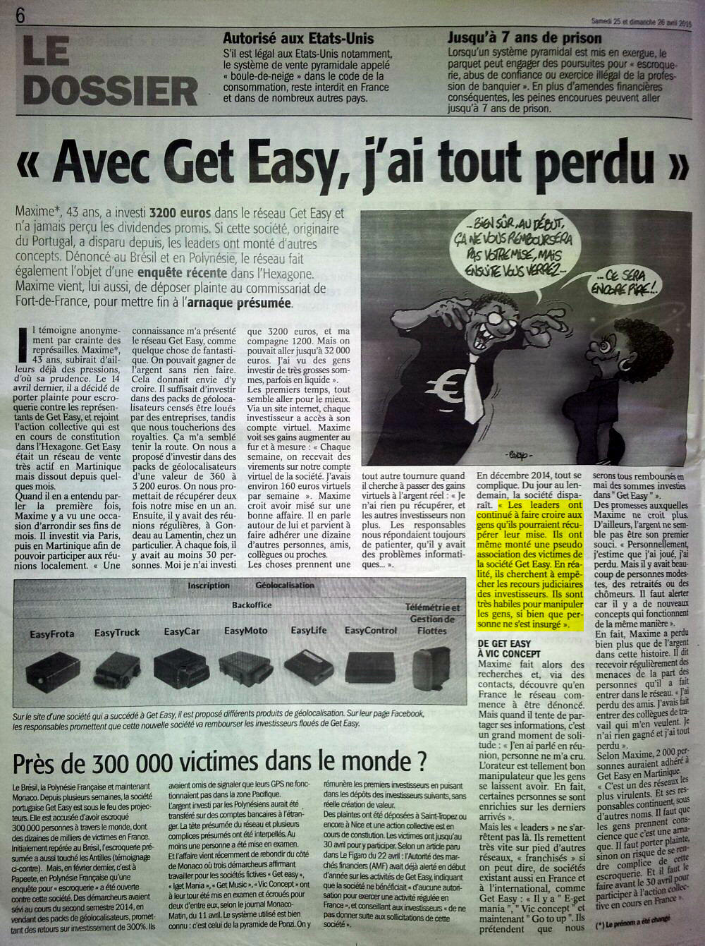 Tout d’abord je dois vous dire que j’ai moi-même été membre de GetEasy, avec un pack trackers à 3200€, au début j’y croyais à 1000%, juste après mon inscription j’ai parrainé deux membres de ma famille pour 3200 et 1200€. Heureusement 15 jours après mon inscription je suis tombé par hasard sur les premiers éléments compromettants qui m’ont poussé à approfondir mes recherches que je vous présente ici de façon détaillée. Le fait d’avoir été moi-même membre de cette escroquerie m’a permis d’obtenir des informations et de prendre conscience de certains éléments qui sont difficilement accessibles au gens "de l’extérieur". De plus j’ai eu accès aux groupes secrets Facebook par l’intermédiaires desquels les leaders transmettent les nouvelles des dirigeants aux membres.